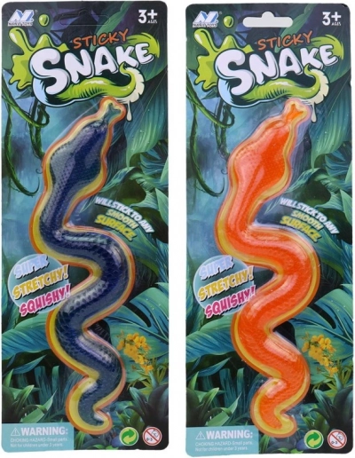 Ontdek eenvoudige en verslavende fun met de kleverige slang die uitstekend blijft plakken op gladde oppervlakken en terugkeert in de hand. Dankzij het duurzame materiaal en de levendige kleuren is het een ideaal kleinigheidje voor kinderen die van speelse experimenten en sensorische prikkels houden.