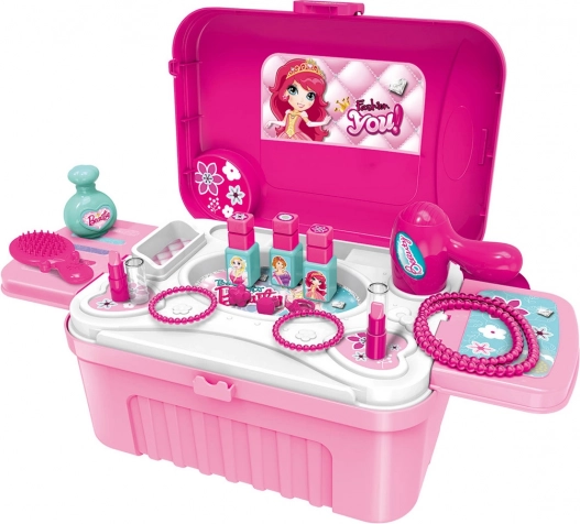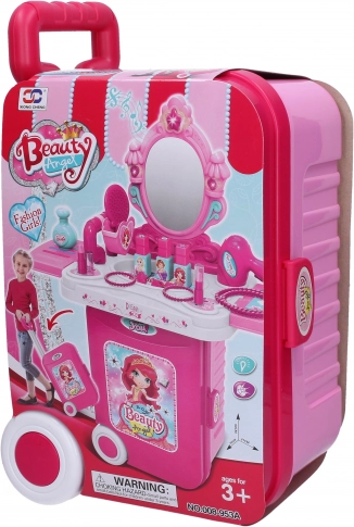 Gemakkelijk mee te nemen set voor kleine stylisten – trek de hendel uit, rijd op de wieltjes en speel overal.
