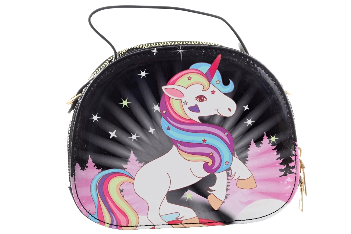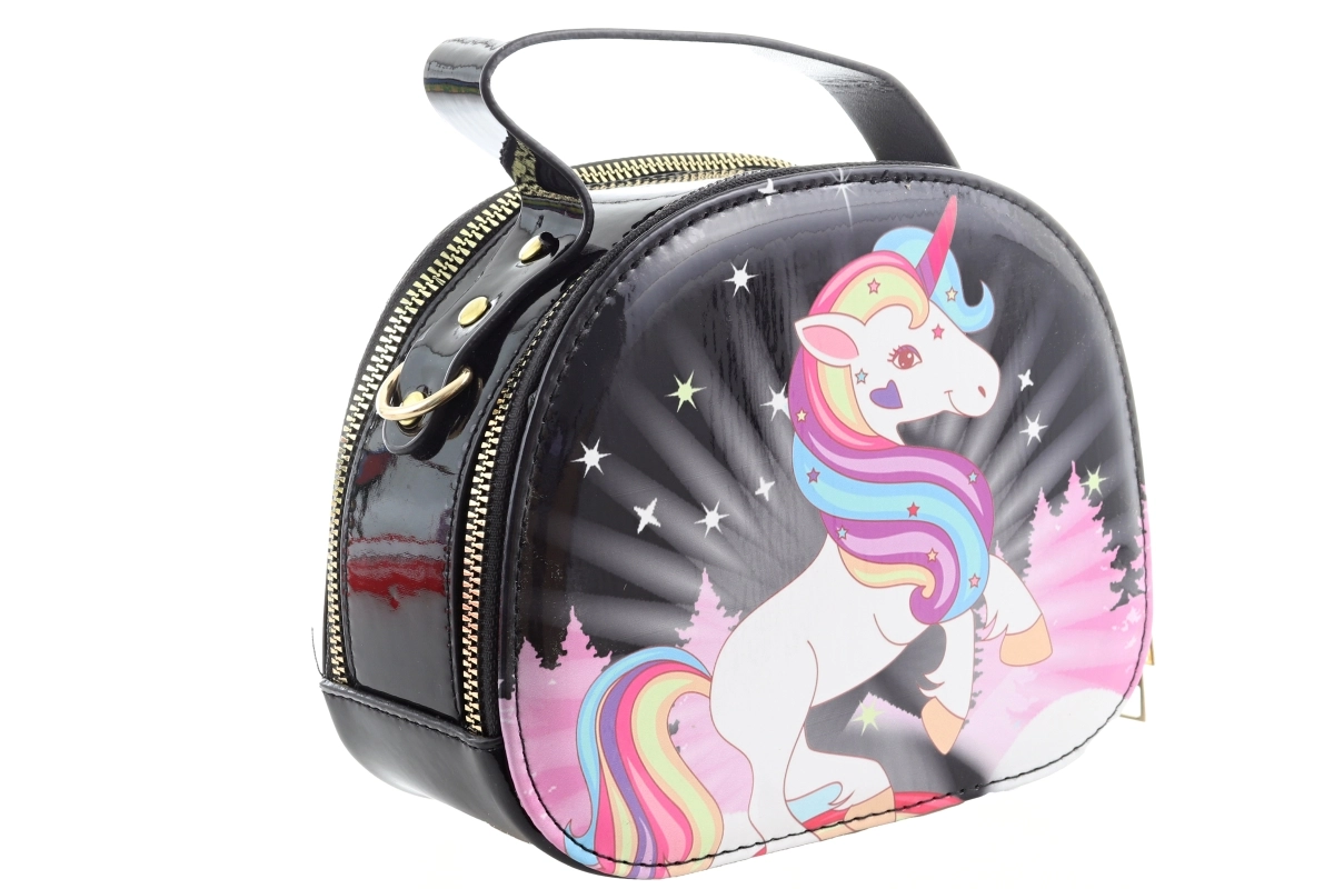Deze stijlvolle tas met een betoverend eenhoornmotief is een geweldige accessoire voor kinderen en tieners. Het glanzende, gemakkelijk afwasbare oppervlak en het stevige handvat zorgen voor comfortabel en langdurig gebruik. Dankzij één hoofdvak met rits zijn alle kleine spulletjes veilig opgeborgen.