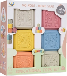 De ecologische set van 6 zachte blokken in pasteltinten biedt eindeloze speelmogelijkheden en leermomenten. Elk blokje heeft een andere oppervlaktestructuur en motieven die de fijne motoriek, oog-handcoördinatie en zintuiglijke ontwikkeling bevorderen. Dankzij het veilige, zachte materiaal zijn ze ideaal voor peuters en kunnen ze ook dienen als bijtspeeltje bij doorkomende tandjes.