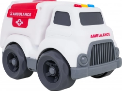 Schattig ambulancetje voor kinderen vanaf 18 maanden met veel speelplezier dankzij licht- en geluidseffecten, te openen achterdeuren en een veilige, afgeronde vorm zonder scherpe randen. Op het dak vind je gekleurde knoppen die het start-, rij- en achteruitrijgeluid en een vrolijke melodie activeren. Batterijen zijn inbegrepen, dus het spel kan meteen beginnen.