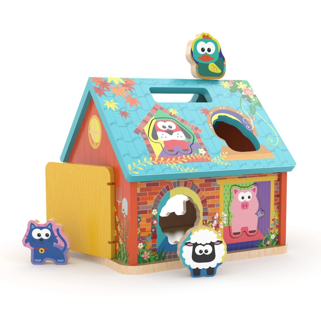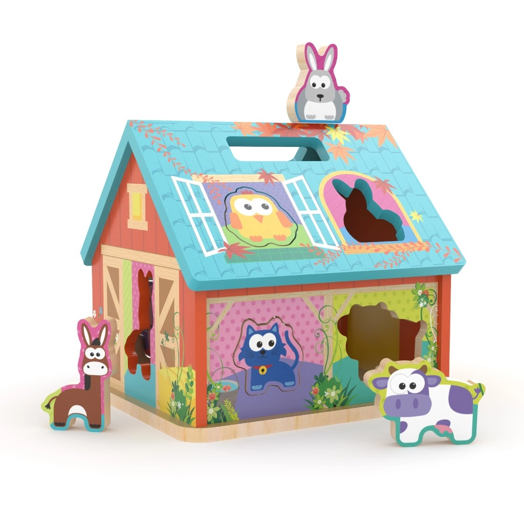 Het houten boerderijhuisje is een leuk en educatief insteekspel dat kinderen spelenderwijs vormen en dieren laat ontdekken. Elk houten stukje heeft zijn eigen plek – plaats het eenvoudig in de bijpassende opening in het huisje. Dankzij het praktische handvat is het speelgoed gemakkelijk mee te nemen, en dankzij de openende deurtjes kunnen kinderen de stukjes zelf opbergen.
