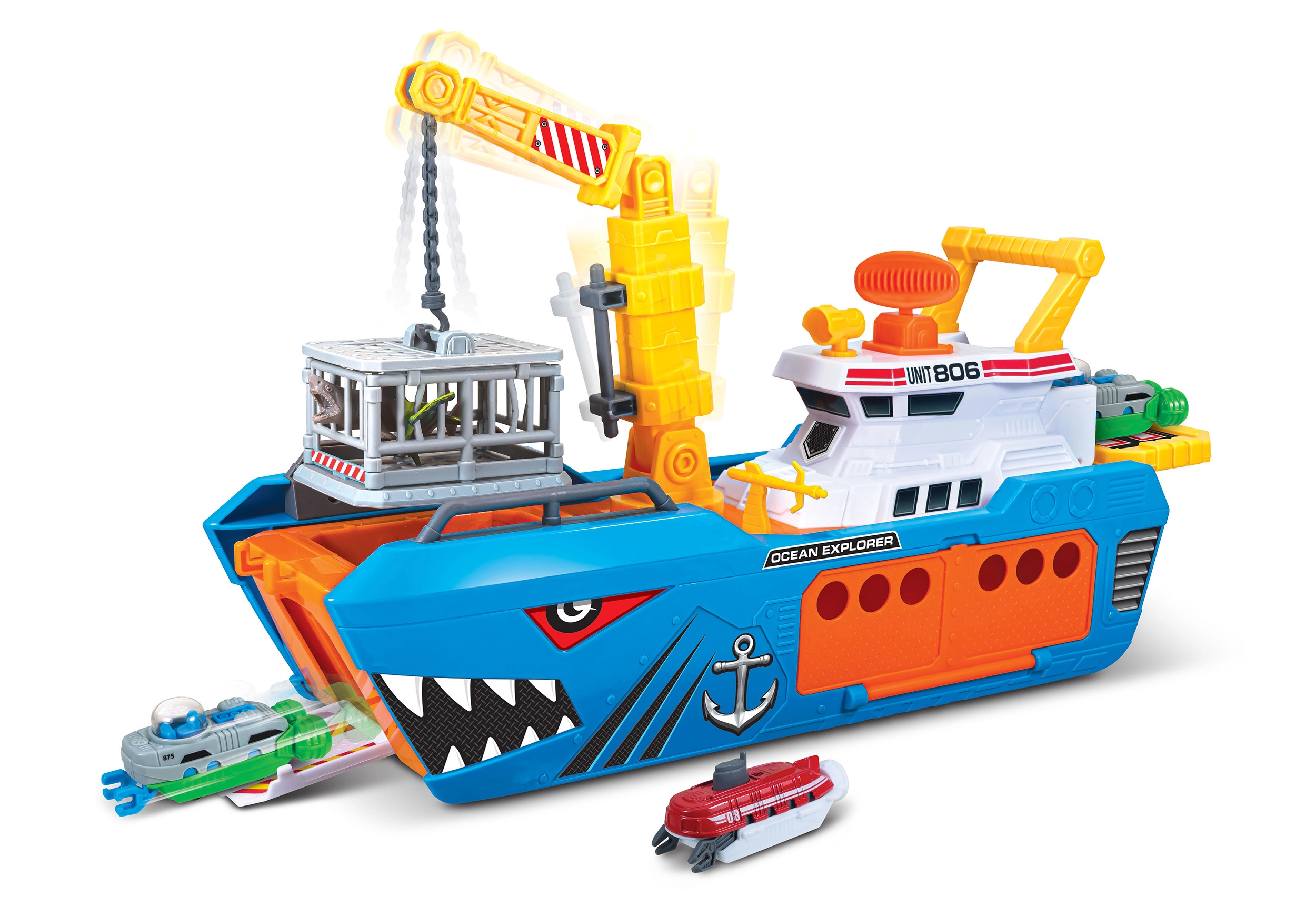 Ga op een avontuurlijke zeemissie met deze gedetailleerde set voor kleine kapiteins. De set biedt een leuk spel met een boot, accessoires en het thema haaienjacht. Stimuleert fantasie, motorische ontwikkeling en samen spel.