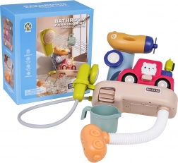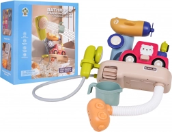 Deze badset voor kinderen met douche en accessoires brengt volop spel en fijne motoriek in het bad. Dankzij de betrouwbare zuignappen bevestig je hem eenvoudig aan het bad of op gladde tegels. De elektrische douche (op batterijen 3× 1,5 V, niet inbegrepen) pompt water rechtstreeks uit het bad – dompel het onderste deel van de module in het water en druk op de knop.