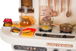 Mega kinderkeuken met licht, geluid en stoom – beige, 93 stuks accessoires