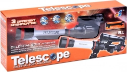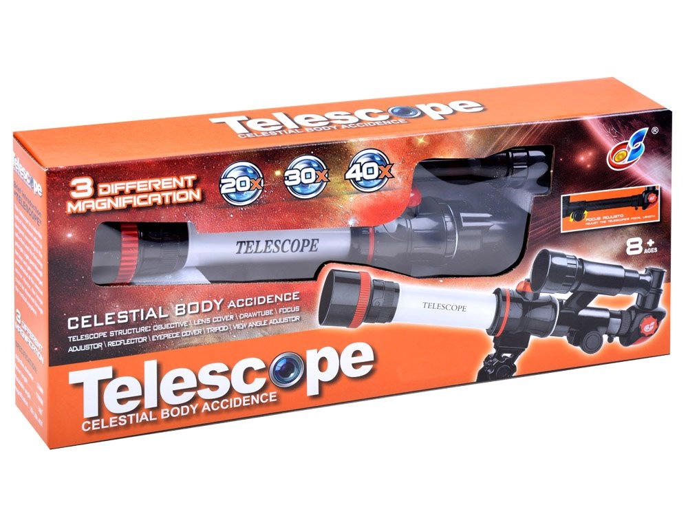 De set bevat drie oculairs met vergroting 20×/30×/40×, een compact tafelstatief en een mini-kompas voor oriëntatie. De telescoop kan gemakkelijk op een bureau worden geplaatst zodat je meteen het heelal kunt verkennen zonder ingewikkelde instellingen.
