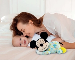 Deze zachte pluche MICKEY MOUSE is een ideale metgezel voor het inslapen en voor rustige momenten overdag. Hij combineert kalmerende lichteffecten met melodieën en geluiden die een natuurlijke omgeving voor de baby nabootsen. Het gekleurde licht met veranderende intensiteit (chromotherapie) helpt te ontspannen, spanning te verminderen en een prettige sfeer te creëren.