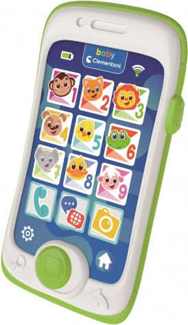 De interactieve pratende touchscreen-smartphone van CLEMENTONI is een leuke en educatieve speelgoedtelefoon voor kinderen van 12 tot 36 maanden. Dankzij 12 aanraaktoetsen leren kinderen dieren, cijfers en geluiden, terwijl melodieën en geluidseffecten het gehoor stimuleren. Drie kleurrijke LED-lampjes en aantrekkelijke graphics houden de aandacht van kleine ontdekkers vast en ondersteunen cognitieve ontwikkeling, fijne motoriek en imitatie van volwassenen.