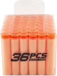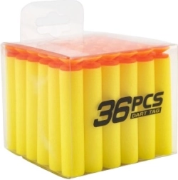 Deze universele set bevat 36 foam pijltjes met zuignap in vier opvallende kleuren. De zachte foam zorgt voor veilig speelplezier binnen en buiten, de zuignappunten hechten eenvoudig op gladde oppervlakken en het doosje met handvat maakt dragen en opbergen gemakkelijk.
