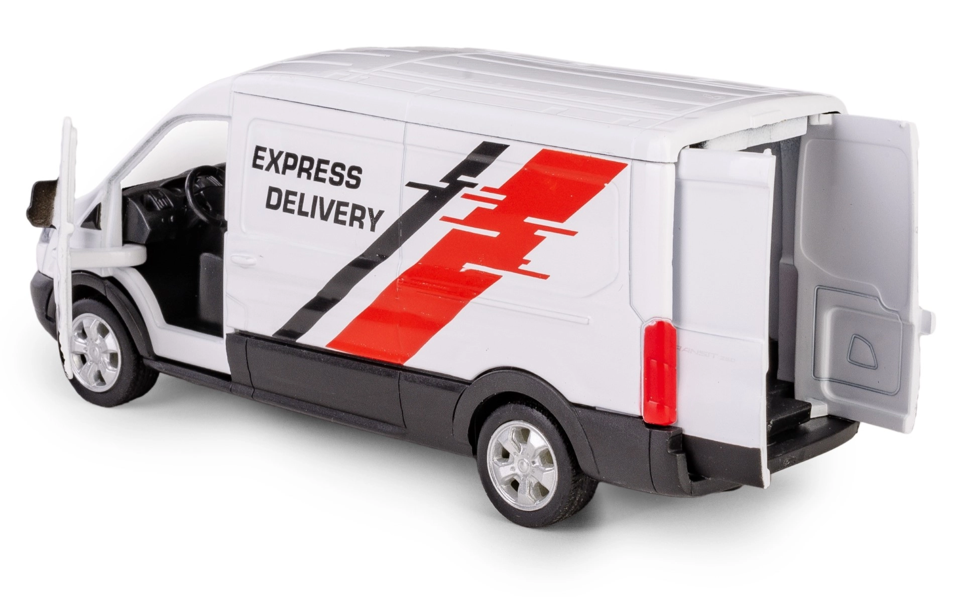 Het model op schaal 1:43 is ideaal voor verzamelaars, liefhebbers van bedrijfsvoertuigen en voor fantasierijk kinderspel. De witte “Express Delivery”-graphics staan zowel mooi op de plank als tijdens het rijden op de vloer. Het product voldoet aan de Europese kwaliteits- en veiligheidsnormen CE en is dus geschikt voor jonge chauffeurs vanaf 3 jaar.