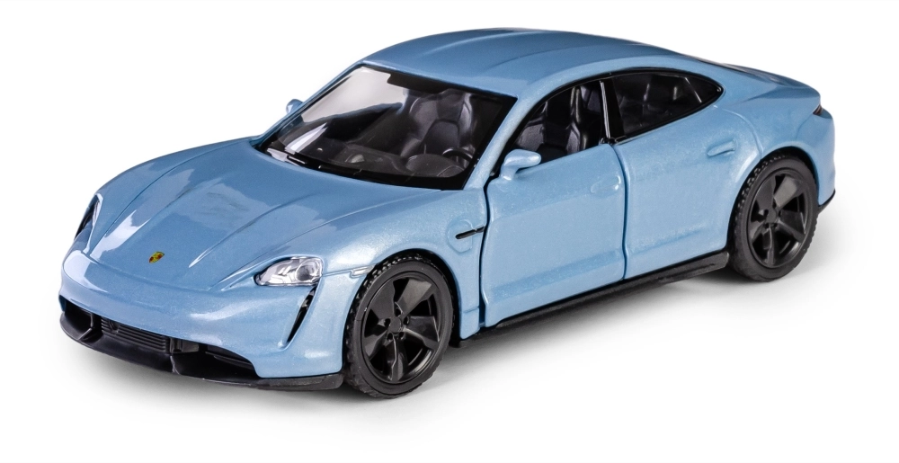 Metalen automodel PORSCHE Taycan Turbo S 2020 met pull-back aandrijving – blauw (1:40)