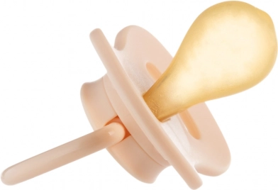 De speen van natuurlijke rubber is zacht, flexibel en prettig in de mond. De natuurlijke honingkleur en matte afwerking bevestigen de zuivere samenstelling zonder BPA.