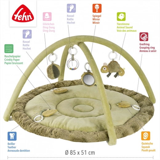 Een superzachte 3D speelmat met kameleonmotief en dubbele speelbogen biedt plezier vanaf de geboorte en ondersteunt de motorische ontwikkeling tijdens liggen, spelen en zitten. Bevat 7 afneembare s... Meer tonen