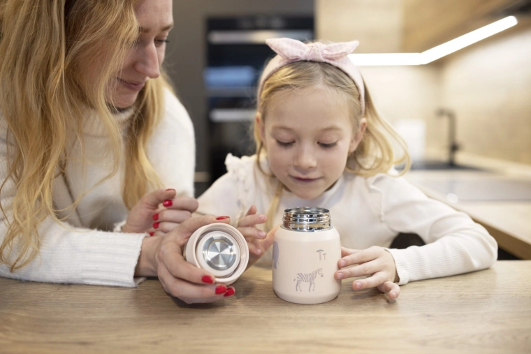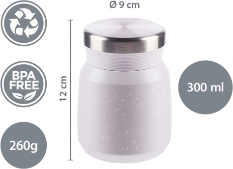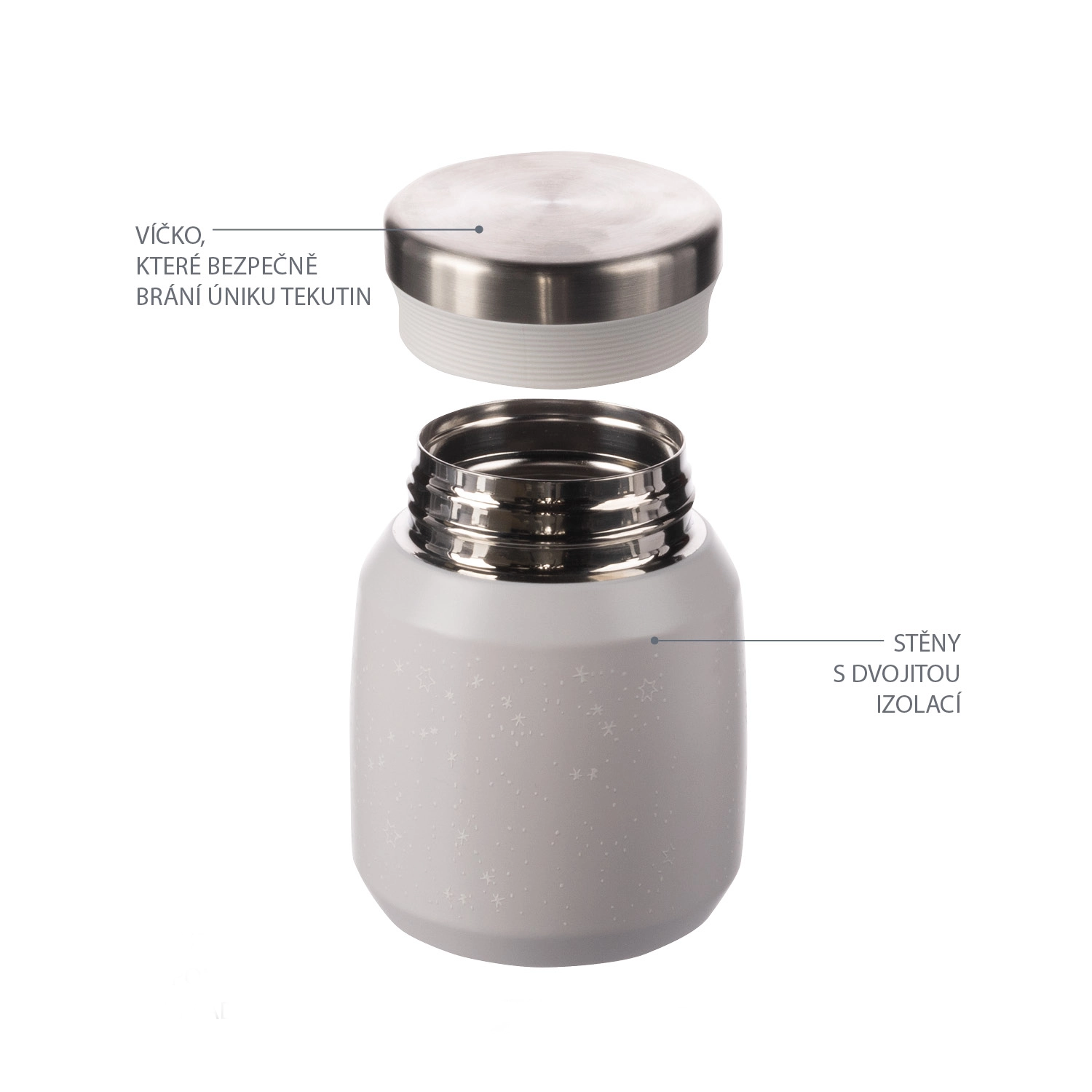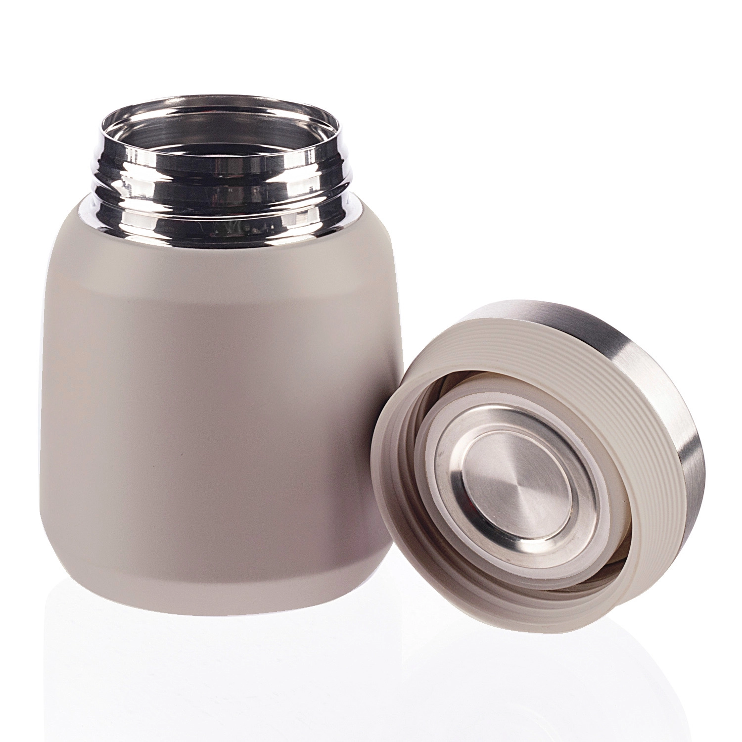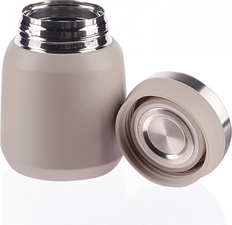 Zoek je een betrouwbare container voor soepen, pap, babyhapjes of salades voor onderweg of naar het werk? Deze elegante thermoscontainer in de tint Cookie beige combineert roestvrij staal met effectieve vacuümisolatie, waardoor de buitenkant niet opwarmt en de inhoud lang de gewenste temperatuur behoudt. De brede opening zorgt voor comfortabel serveren en makkelijk reinigen.