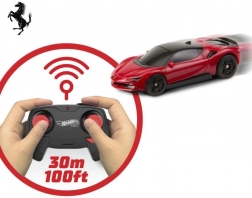 De op afstand bestuurbare Hot Wheels RC Ferrari SF90 Stradale Assetto Fiorano blinkt uit door realistische afwerking en geweldige rijeigenschappen in het compacte 1:64-formaat. Ideaal voor vrij rijden in huis én voor spectaculaire stuntacties op Hot Wheels-banen.