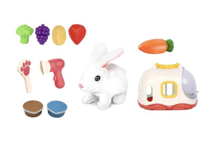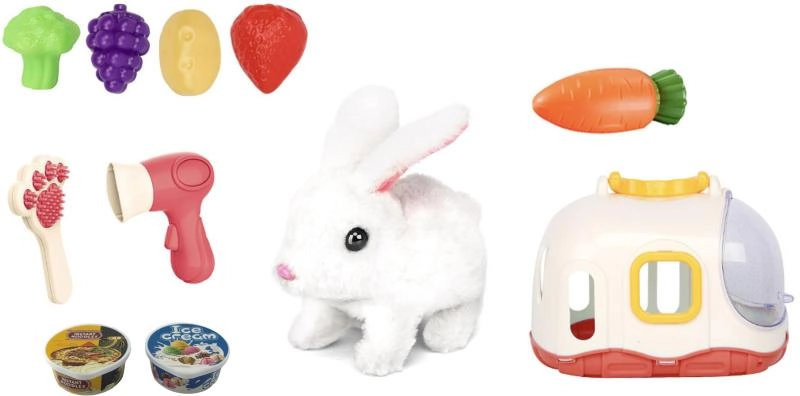 In de set vind je alles wat kinderen nodig hebben om te zorgen en te spelen: een kam en föhn voor de vachtverzorging en kunststof lekkernijen (fruit en groenten) om voerspelletjes na te bootsen. Het speelgoed stimuleert fantasie, fijne motoriek en een verantwoorde houding ten opzichte van de zorg voor een dier.