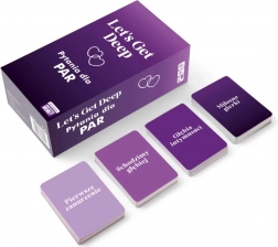 Het spel Let's Get Deep is de ideale keuze voor koppels die hun momenten samen willen kruiden en elkaar beter willen leren kennen. De kaarten zijn verdeeld in vier categorieën – Eerste duik, Dieper gaan, Diepte van intimiteit en Liefdesspellen – en nemen je stap voor stap mee van luchtige onderwerpen naar intiemere vragen.