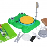 Ontdek de creatieve wereld van keramiek met deze speelse kikkervormige set voor kinderen vanaf 6 jaar. Het gemotoriseerde pottenbakkerswiel met twee snelheden maakt het mogelijk om eigen schaaltjes, bekers en bloempotjes te maken en ze daarna te versieren met verf. Inclusief USB-voeding (Type‑C, max. 5 V), gereedschap, penselen, verf en klei – alles wat een kleine kunstenaar nodig heeft. Bevordert de fijne motoriek, stimuleert creativiteit en is een geweldig cadeau voor jonge makers.