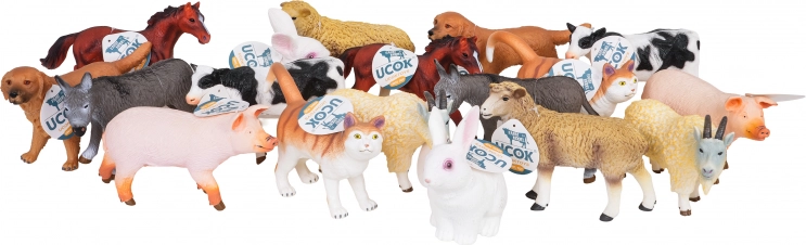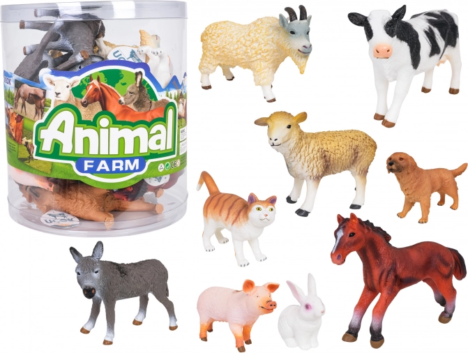 In de verpakking vind je een gevarieerde selectie boerderijdieren, waaronder paard, koe, varken, geit, schaap, ezel, hond, kat en konijn – telkens in tweevoud, zodat kinderen makkelijk in duo’s kunnen spelen of kleine “kuddes” kunnen maken. De praktische koker/box zorgt voor orde en eenvoudig transport, waardoor de set geschikt is voor thuis, de opvang en onderweg.