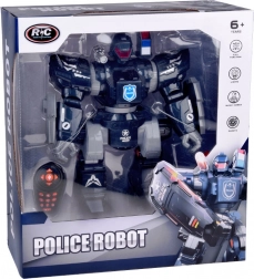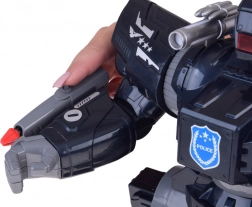 Interactieve politierobot met afstandsbediening voor actievolle fun voor kinderen. Hij kan bewegen, draaien, dansen op melodieën, heeft lichteffecten, geluidseffecten en schiet zachte projectielen. Dankzij de grote afmetingen ca. 38 × 30 × 16 cm, instelbaar volume en demomodus is het een perfect cadeau voor kleine fans van politie en robots.