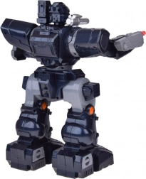 Zet een futuristische ordehandhaver in dienst. De RC politierobot in donkerblauw-grijs met POLICE-emblemen valt op door de robuuste afwerking, beweeglijke armen en schouderbewapening. De bediening is intuïtief dankzij de overzichtelijke afstandsbediening – de robot beweegt vooruit/achteruit, draaibt en danst met licht en muziek.