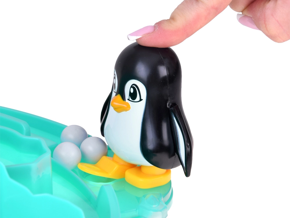 Druk op het hoofd van de pinguïn en stuur de sneeuwbal over de ijzige baan. Het eenvoudige mechanisme is leuk en makkelijk te bedienen, ook voor jongere kinderen.