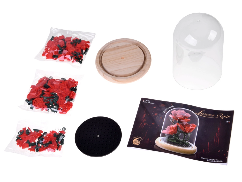 Deze design-bouwset combineert leuk bouwen met een decoratief effect. De roos in de heldere koepel oogt als een klein kunstwerk en dankzij de warmwitte LED-verlichting komt hij vooral ’s avonds tot zijn recht. Stevige kunststof onderdelen klikken gemakkelijk in elkaar en behouden de vorm, waardoor het eindmodel stabiel is en klaar om tentoon te stellen.