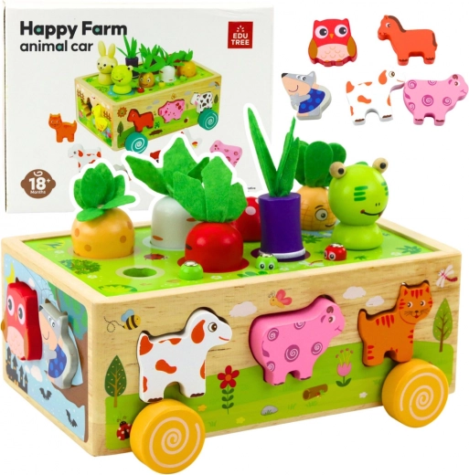 Ontdek spelenderwijs leren met de houten Boerderij op wieltjes, die een vormensorteerder, belletjes, magnetische wormpjes en dierenfiguurtjes combineert. Stimuleert fijne motoriek, logisch denken, gehoor en coördinatie – helemaal in de geest van Montessori leren en speels plezier.