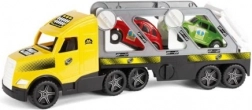 Magic Truck Action Retro is een uitstekende keuze voor kleine autoliefhebbers en racers. De grote truck met realistische details en een lang oplegplateau biedt tal van speelscenario’s – van het vervoeren van oldtimers tot race-assistentie. De aanhanger kan op twee manieren worden aangekoppeld, is stuurbaar en uitgerust met uitschuifbare steunpoten, zodat hij zelfstandig kan staan.