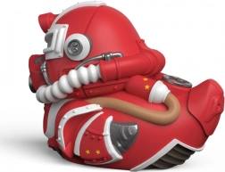 Het rode kleurenschema met het Nuka‑Cola logo en karakteristieke details van de T‑51 power armor zorgen ervoor dat deze eend direct opvalt in elke collectie.