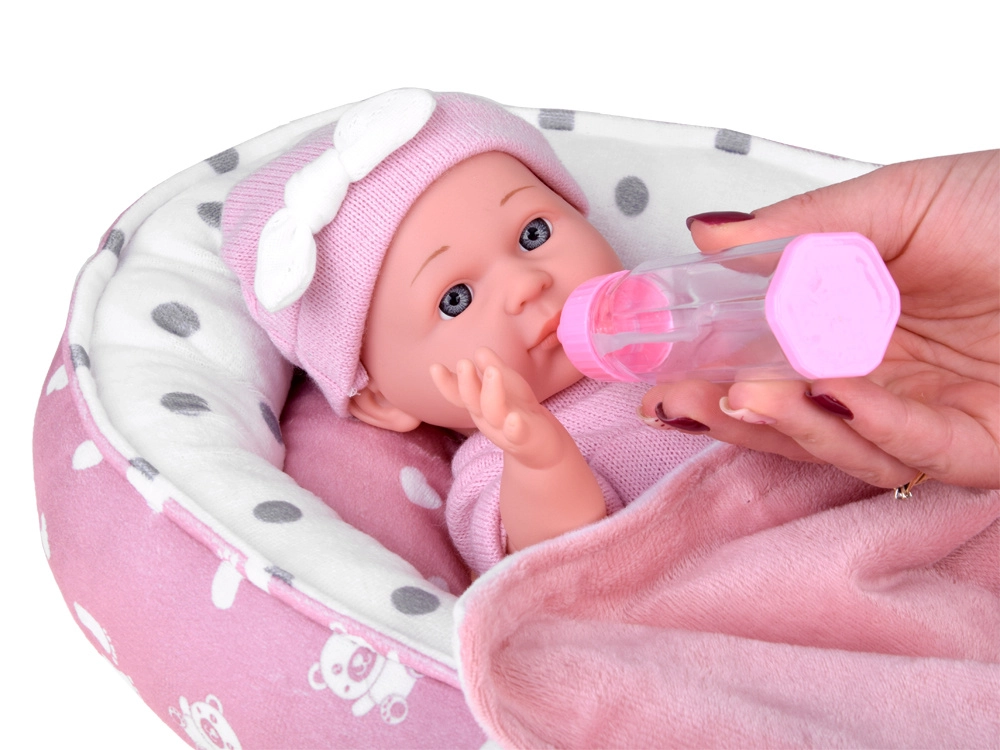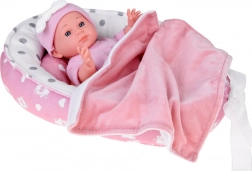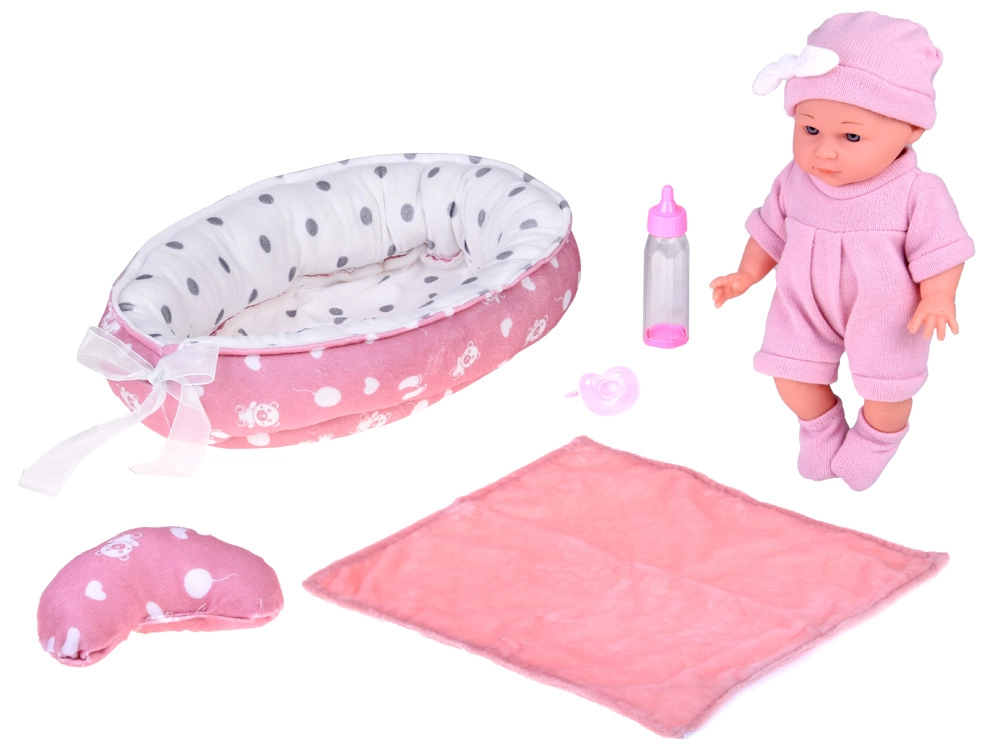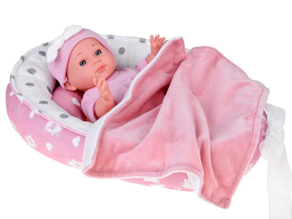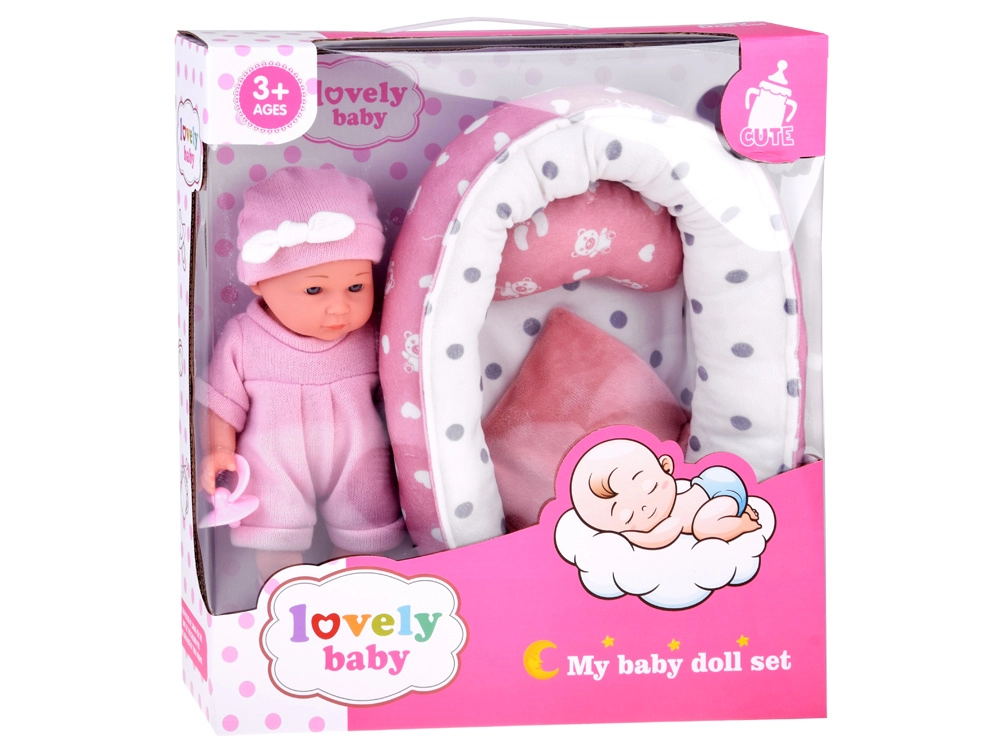 Deze babypop is ontworpen voor tedere verzorgingsspelletjes. Dankzij het realistische gezichtje, de zachte roze outfit en de bewegende armpjes en beentjes beleven kinderen uren creatieve pret. Het zachte textielen nestje met kussentje en dekentje biedt een comfortabele slaapplek.