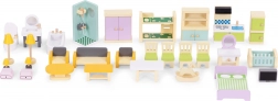 Houten meubels voor een poppenhuis – set van 30 stuks