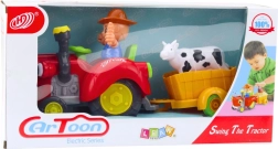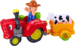 De interactieve boerentractor met aanhanger en een boerfiguurtje zal elke kleine liefhebber van het platteland verrukken. De speelgoedtractor rijdt vooruit en achteruit, heeft lichteffecten, speelt melodieën en geluiden af en het boerfiguurtje beweegt tijdens het rijden. Ook inbegrepen is een aanhanger met een koetje, die creatieve boerderijspeelpret stimuleert.