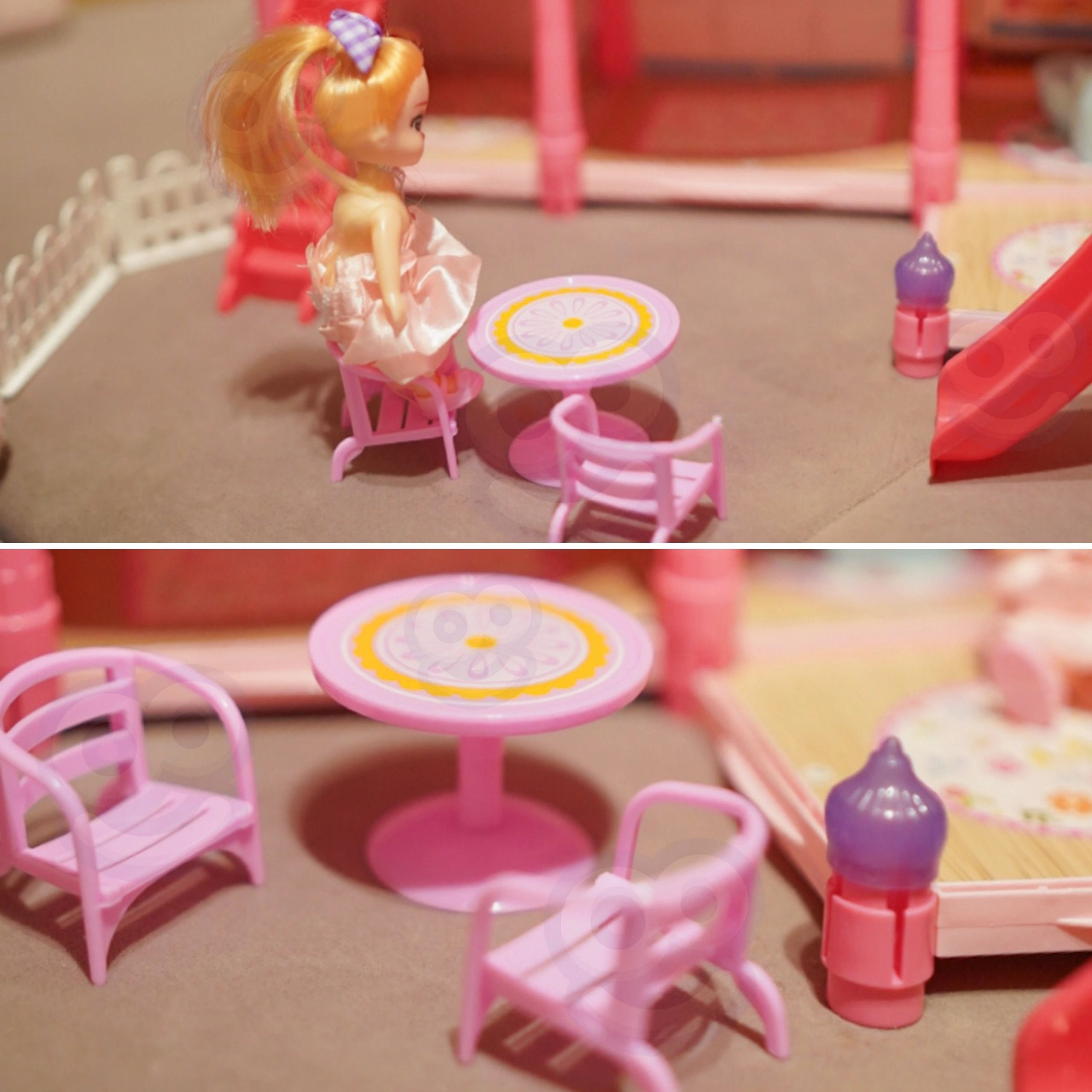 Er is een tuin met glijbaan, trap en terras, die de speelmogelijkheden en scenario’s uitbreiden. De set is ideaal voor kinderen vanaf 3 jaar en ontwikkelt uitstekend de fijne motoriek, oog-handcoördinatie en sociale vaardigheden tijdens rollenspel met vriendjes.