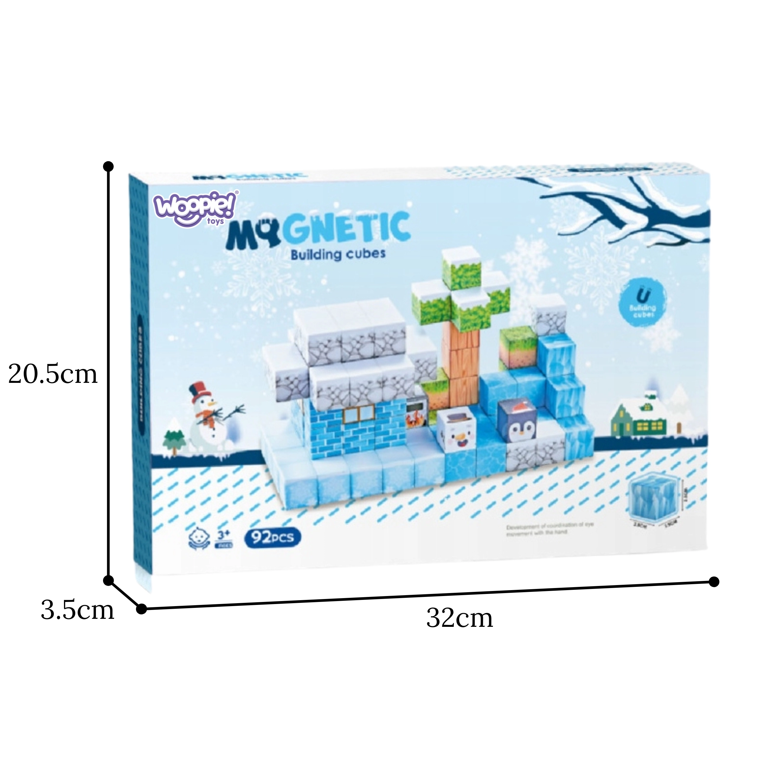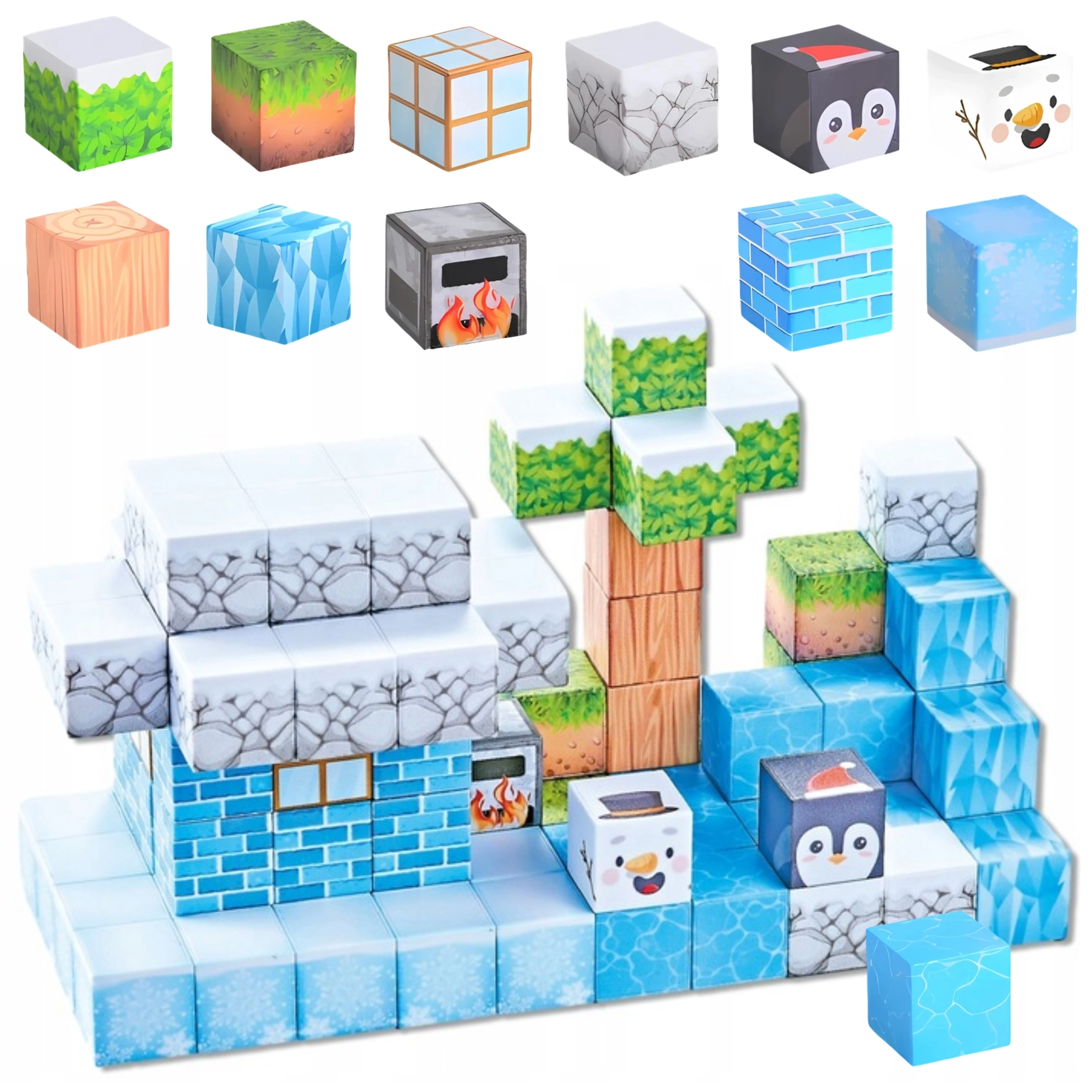 Deze set met 66 magnetische blokjes in winterstijl verrukt jonge bouwers met kleurrijke patronen van ijs, steen, hout, bladeren en pooldieren. Elk blokje meet 2,5 × 2,5 × 2,5 cm en hecht dankzij ingebouwde magneten veilig aan elkaar, zodat constructies blijven staan zonder lijm of andere koppelingen.