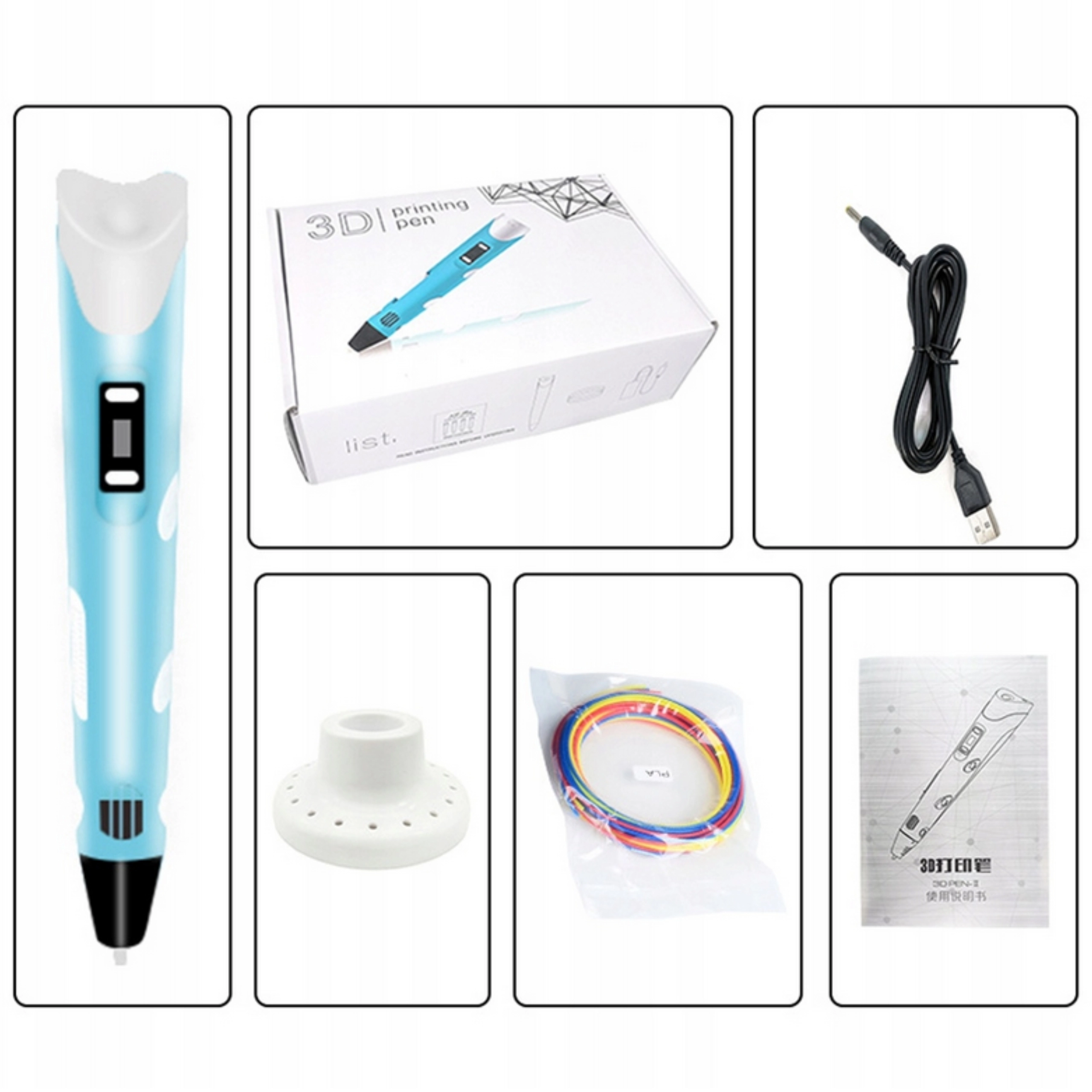 3D-pen (1 st.), PLA-filament 12 × 3 m (verschillende kleuren), USB-kabel (1 st.), handleiding (EN)