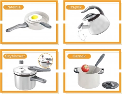 Dankzij de hoogwaardige en veilige afwerking is de set ideaal voor kinderen vanaf 3 jaar. Het ondersteunt creativiteit, sociale vaardigheden en verbetert de coördinatie en fijne motoriek. Een geweldige keuze voor de eerste speelkeuken of als uitbreiding van de bestaande uitrusting.