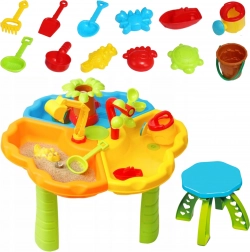 De 2-in-1 speeltafel voor water en zand is ideaal voor in de tuin, op het balkon, terras en in de kinderkamer. De drie bakjes maken gelijktijdige experimenten met water, zand en accessoires mogelijk, zodat kinderen kunnen bouwen, gieten, zeven en verschillende texturen ontdekken. De ergonomische stoel zorgt voor comfort en stabiliteit tijdens het spelen.