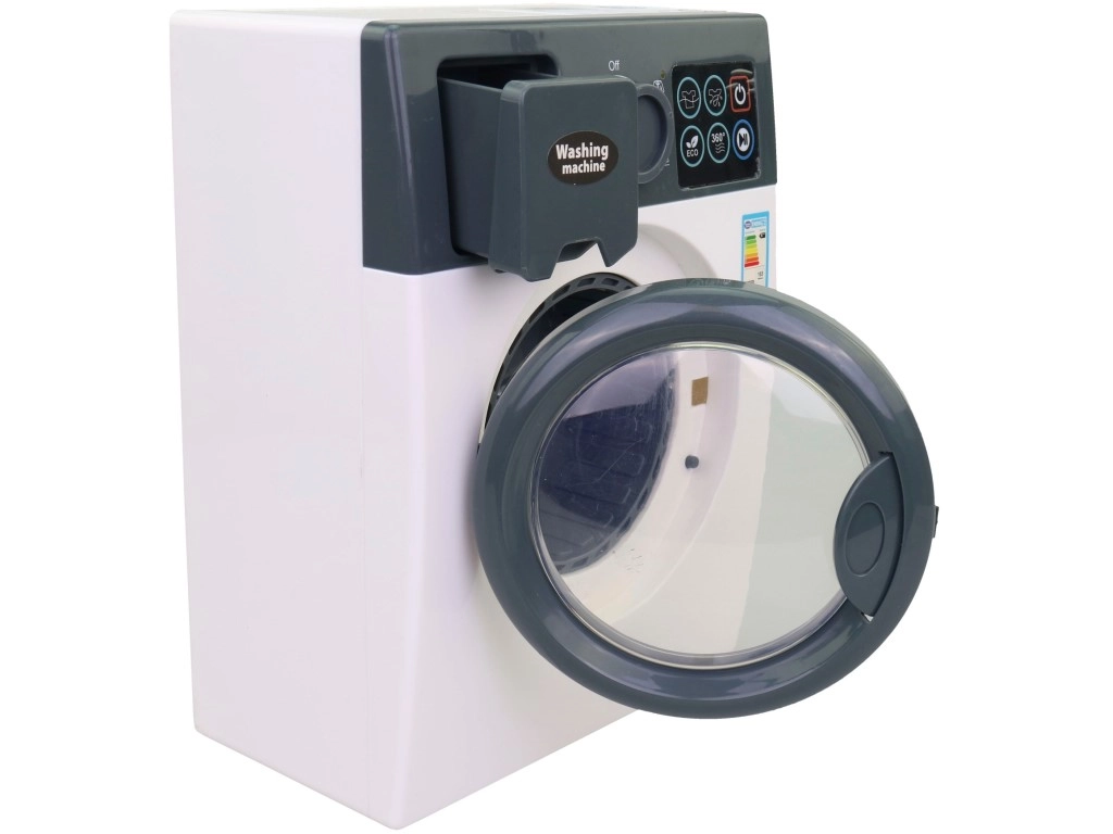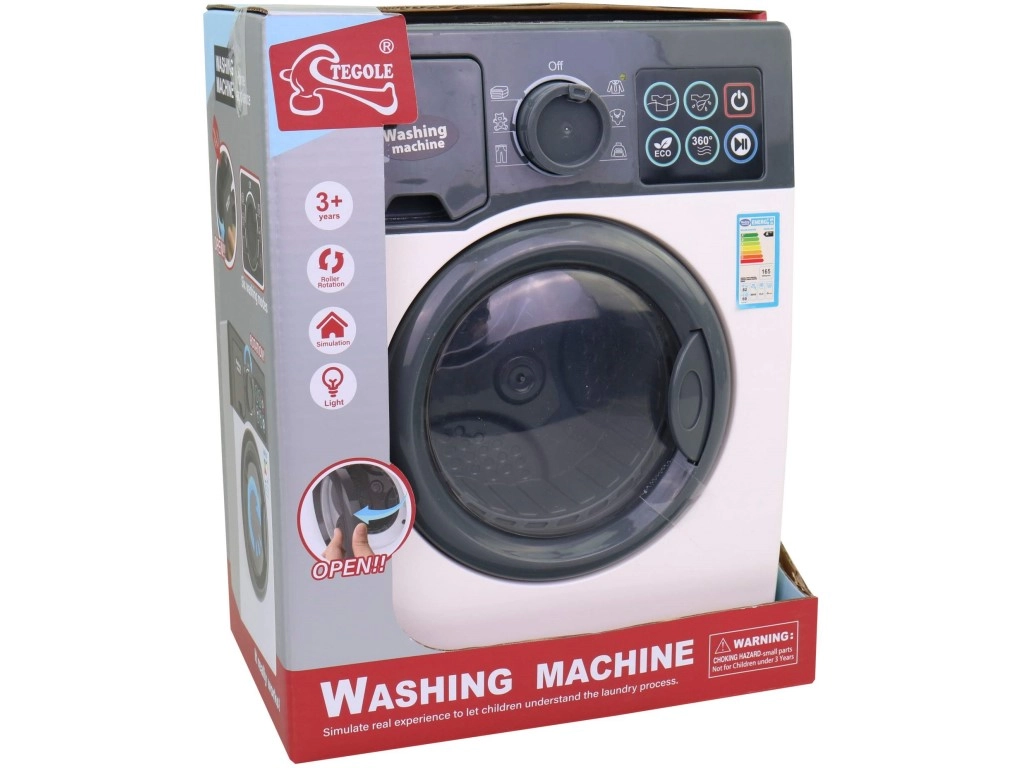 Deze kinderwasmachine biedt kinderen een authentieke ervaring met huishoudelijke taken. Dankzij het realistische ontwerp en de geluidseffecten oefenen kinderen hun fijne motoriek en fantasie. De te openen deur en de praktische lade voor “wasmiddel” stimuleren rollenspel en leren kinderen de basis van kledingverzorging.
