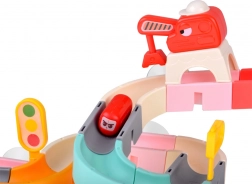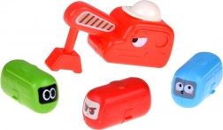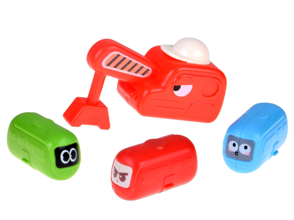 De set bevat een magnetische kraan met haak, bijbehorende verkeersborden en “boonvormige” autootjes met lieve gezichten. Tijdens het bouwen en spelen oefenen kinderen hun fijne motoriek, oog-handcoördinatie, ruimtelijk inzicht en begrip van oorzaak en gevolg.