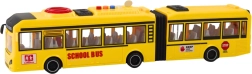 Realistische gelede schoolbus op schaal 1:16 voor kleine fans van stadsvervoer. Biedt licht- en geluidseffecten, openslaande deuren en sturen van de wielen via een draaiknop op het dak. Het gedetailleerde ontwerp, de gele schooluitvoering en de duurzame materialen zorgen voor leuk en leerzaam spel vol verbeelding.