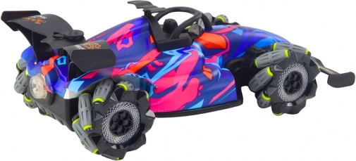 Snel en wendbaar RC‑auto in schaal 1:10 met 360° stunts, mecanum-wielen voor beweging in alle richtingen, een indrukwekkend stoom/waterdamp‑effect en LED‑verlichting. De stabiele 2,4 GHz afstandsbediening zorgt voor storingsvrije ritten en gezamenlijk plezier met meerdere auto’s. Oplaadbare 3,7 V accu inbegrepen, opladen via USB.