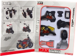 De zwart‑oranje, dynamische kleurstelling benadrukt het sportieve karakter van het model. Na montage kan de motor gemakkelijk op een plank worden tentoongesteld of aan een modelverzameling worden toegevoegd.