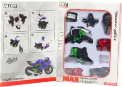 - onderdelen voor het bouwen van de motorfiets, montagehandleiding, geschenkverpakking