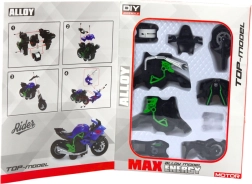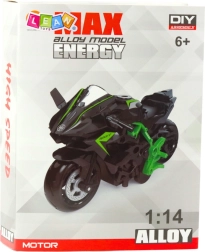 Modelbouwset van een metalen motorfiets op schaal 1:14 zal zowel kleine bouwers als motorliefhebbers blij maken. Realistische onderdelen in groen‑zwarte combinatie vormen na montage een indrukwekkend model. Het bouwen stimuleert de fijne motoriek, logisch denken, concentratie en brengt plezier uit een eigenhandig gemaakt resultaat.