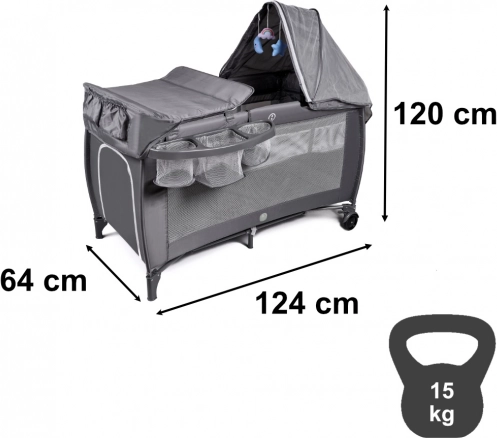 Reis-kinderbedje met twee niveaus en aankleedtafel, tot 15 kg