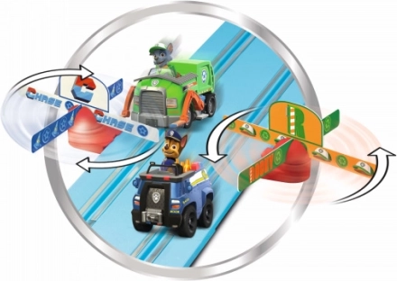 Met de autootjes van Chase en Rocky rijden kinderen over een kleurrond circuit met draaiende propellers en een PAW Patrol-thema voor nog meer plezier.