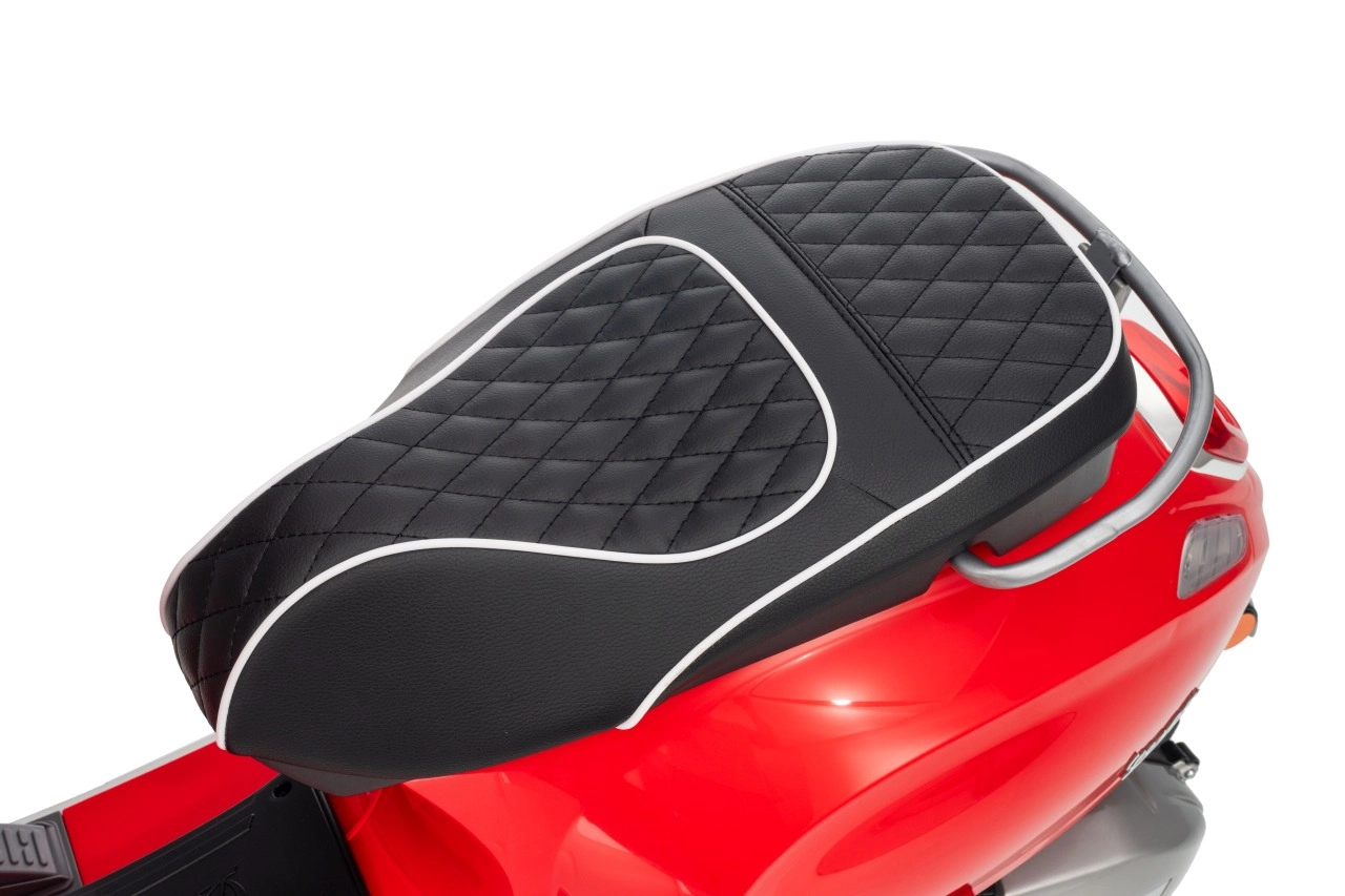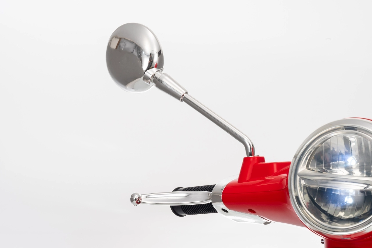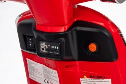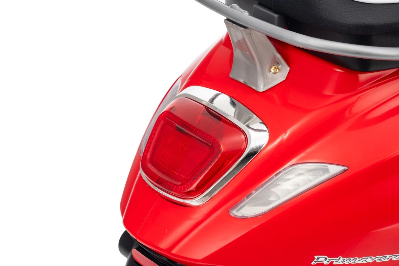 De kinderscooter VESPA ROMA in het rood biedt een authentieke rijervaring in een kindvriendige en veilige uitvoering. Dankzij de vloeiende start, rijden vooruit en achteruit en de hoogwaardige EVA-wielen is de rit comfortabel en stil. Praktische LED-lichten vergroten de zichtbaarheid en geven het voertuig een realistische uitstraling.