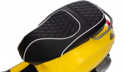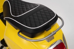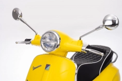 Het geïntegreerde audiopaneel met MP3, Bluetooth en AUX speelt favoriete liedjes af; op het stuur zitten knoppen voor geluiden en de claxon. Heldere LED-lampen voor en achter verhogen de zichtbaarheid en versterken de authentieke look van een echte VESPA.