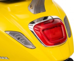 Stijlvolle elektrische kinderscooter VESPA ROMA in een opvallende gele kleur biedt kinderen veilige fun en hun eerste rijervaringen. Dankzij twee motoren van 2×35 W, een 12 V 7 Ah accu, zachte EVA-wielen en een soepele start is de rit comfortabel en stabiel. Voor- en achter LED-verlichting, een audiopaneel met MP3/Bluetooth/AUX, een laadniveau-indicator en een comfortabel zadel van eco-leer ontbreken niet. Een uitstekende keuze voor jonge rijders.